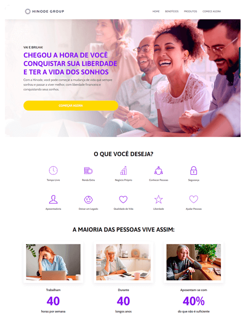 Nós configuramos tudo para você: Desde a criação e otimização de sua página a até mesmo a configuração de um domínio próprio* para você. Dessa forma, você recebe sua página pronta para começar a atuar pela internet de forma rápida e fácil!